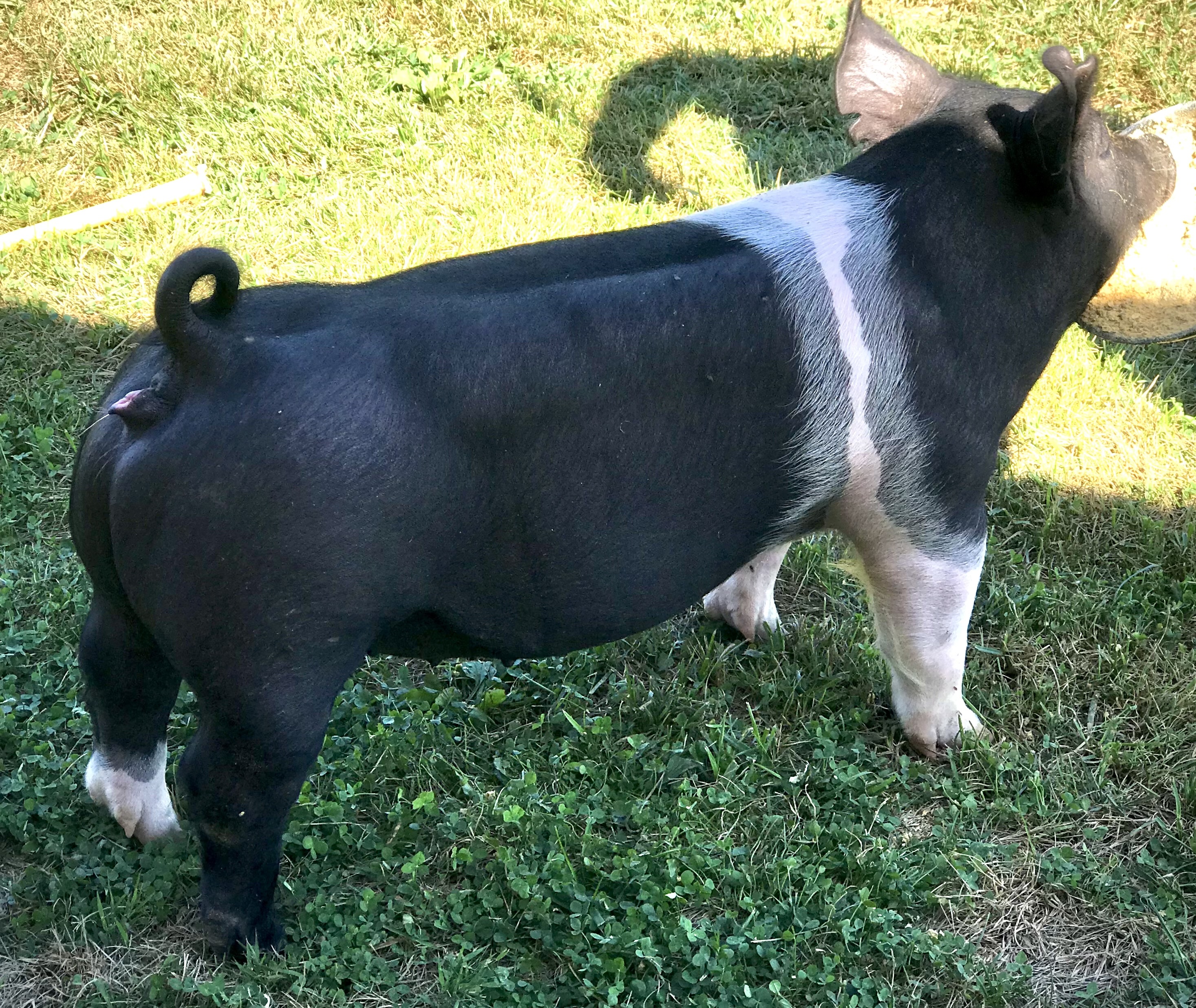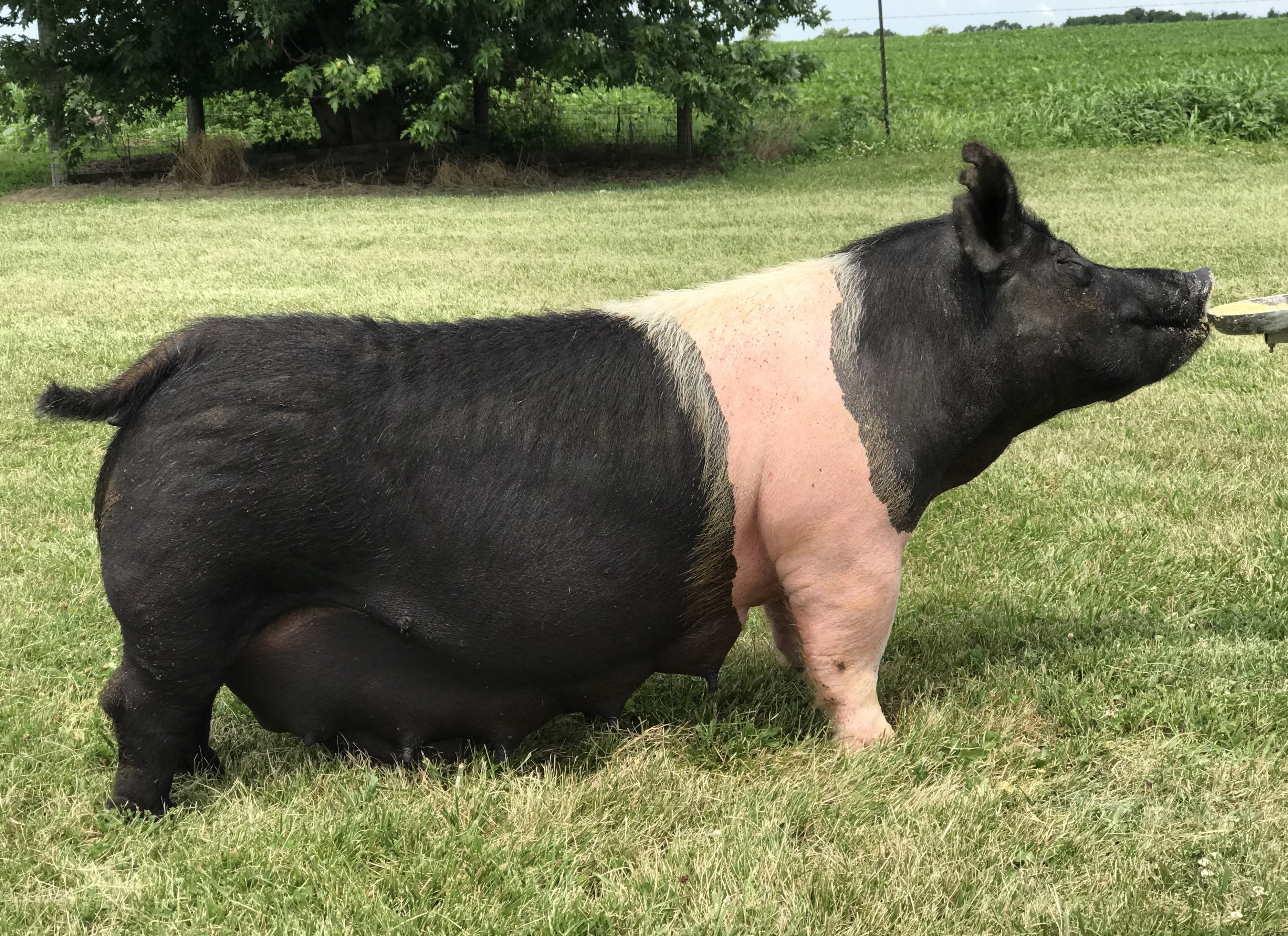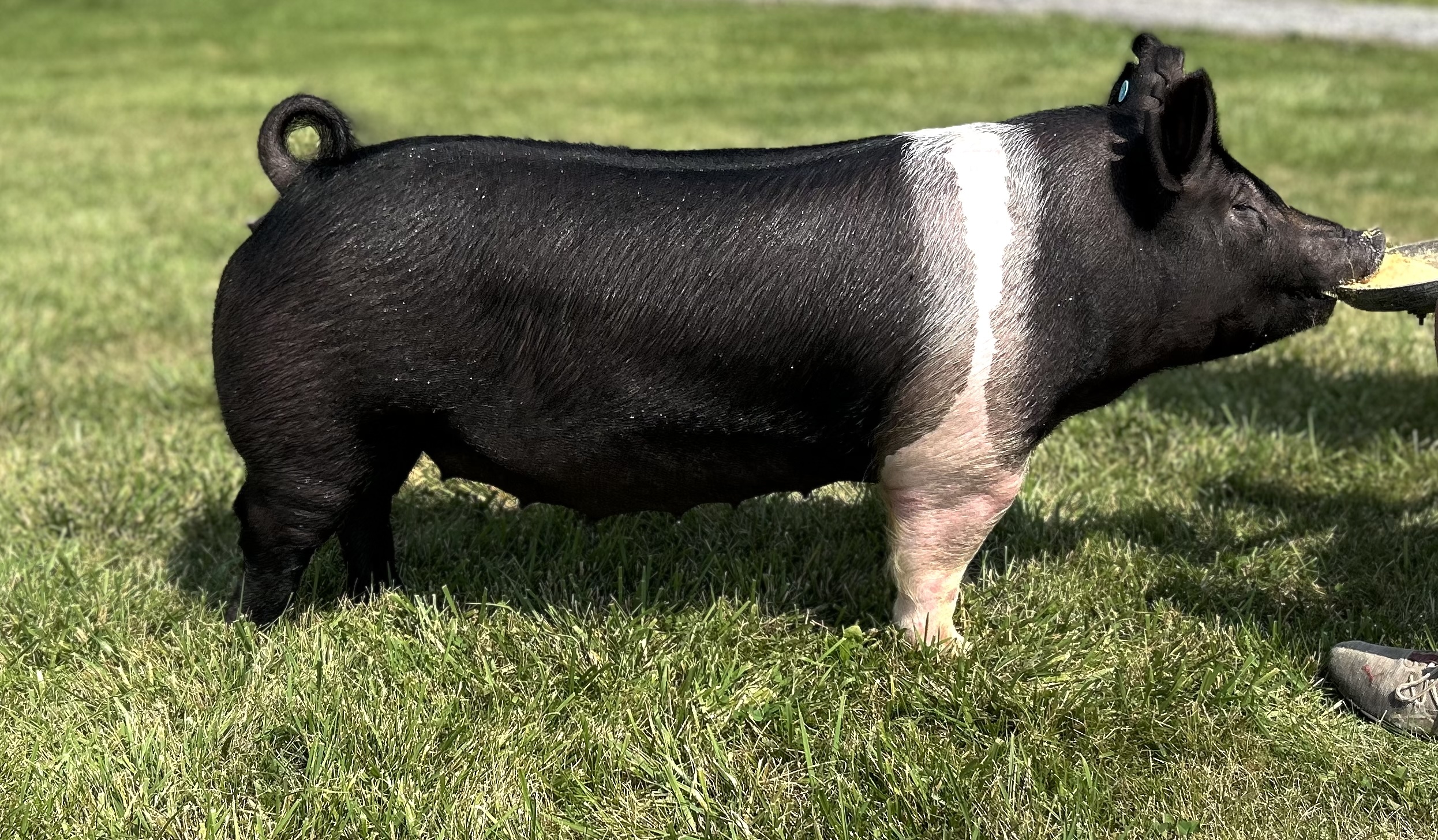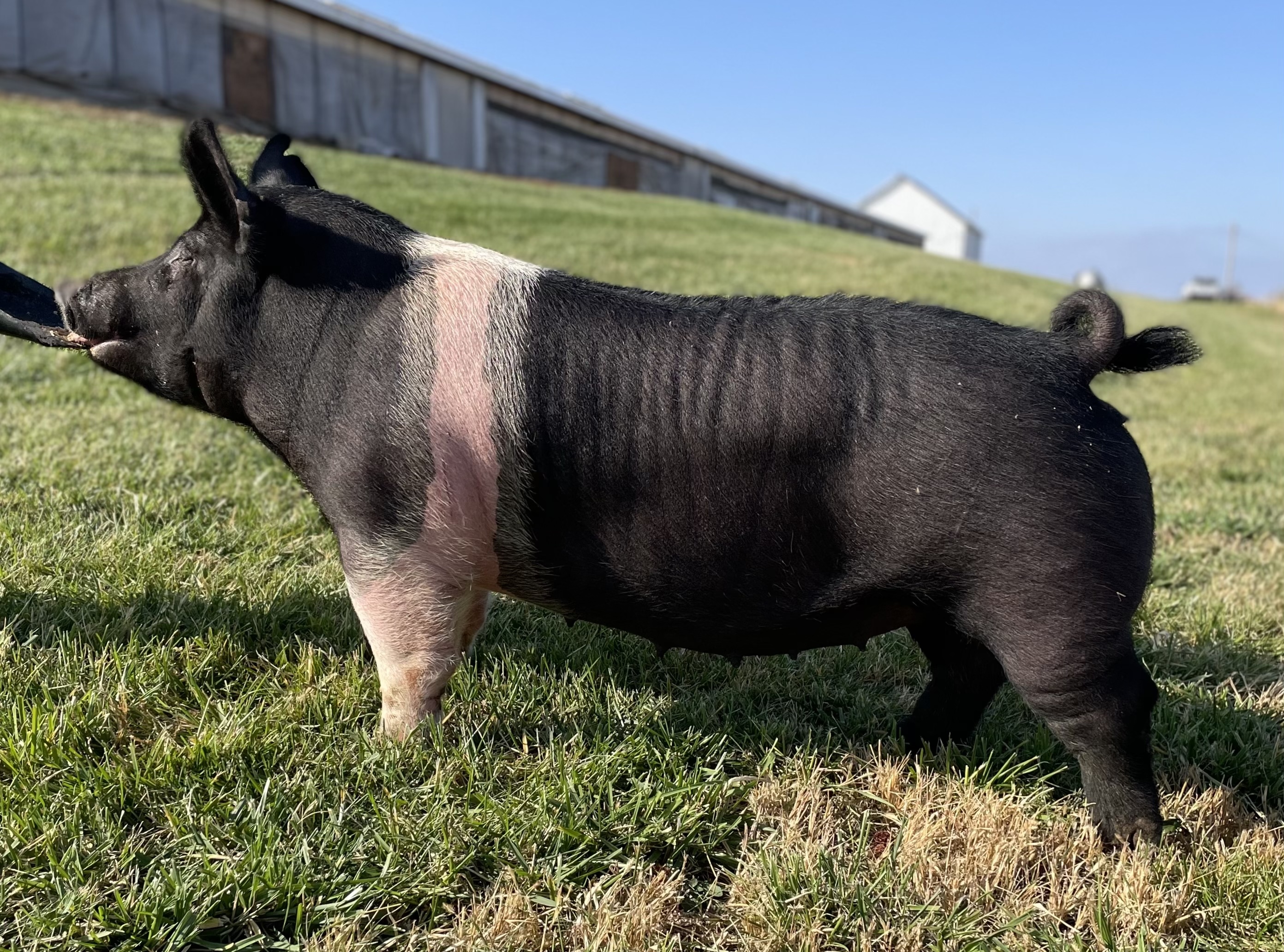 This No Debate female is one of two sows retained during our Turning the Page Sales. She is a true foundation female. 80% of our 2024 sow herd are her daughters, granddaughters, or great granddaughters. Her design, body mass, and fertility are common characteristics of these young females. On the mail side Kingpin and the 2018 Illinois state fair champion board are direct sons.